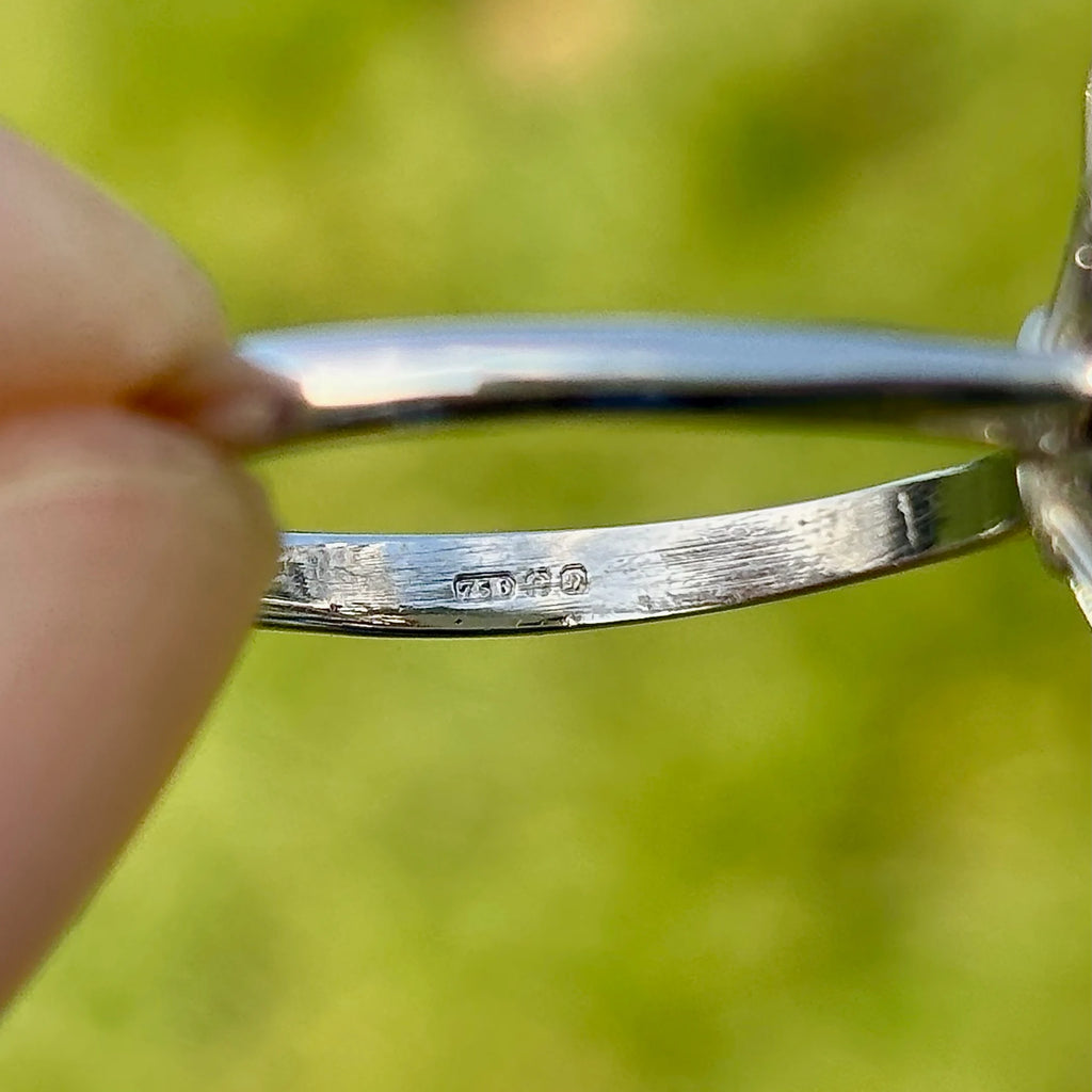 The tapered shoulders draw the eye inward, giving the ring balance and harmony. Crafted in 18ct white gold, the setting enhances the cool tones of the gemstones while maintaining a timeless, versatile aesthetic. Though born in the 1970s, an era known for confident jewellery, this ring feels effortlessly relevant today.