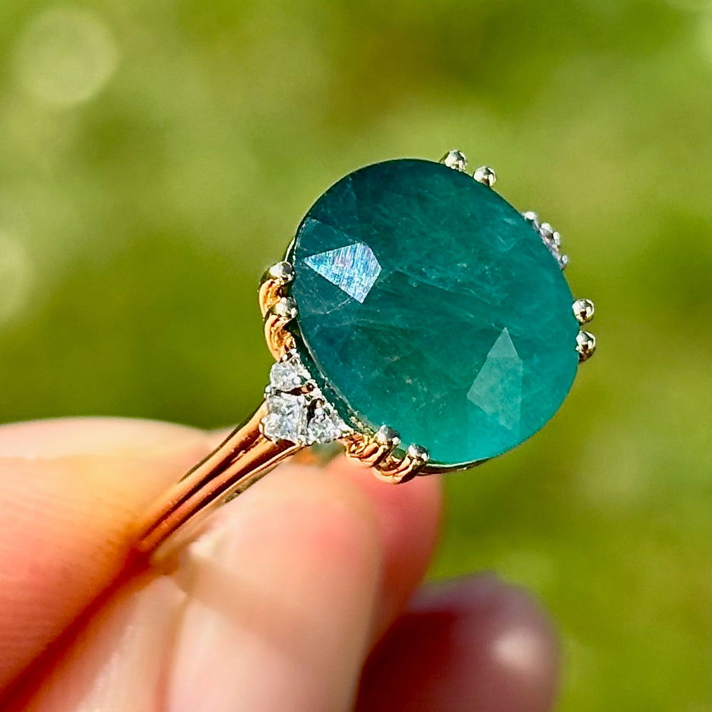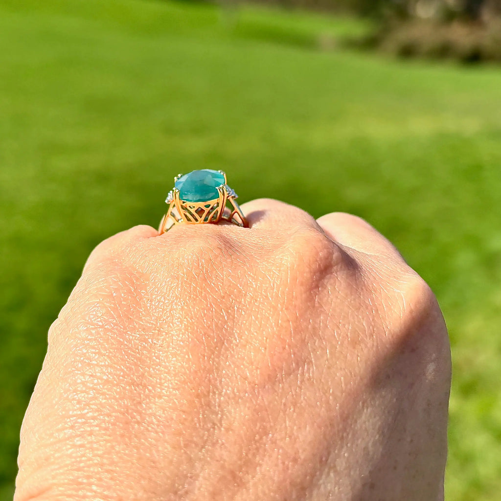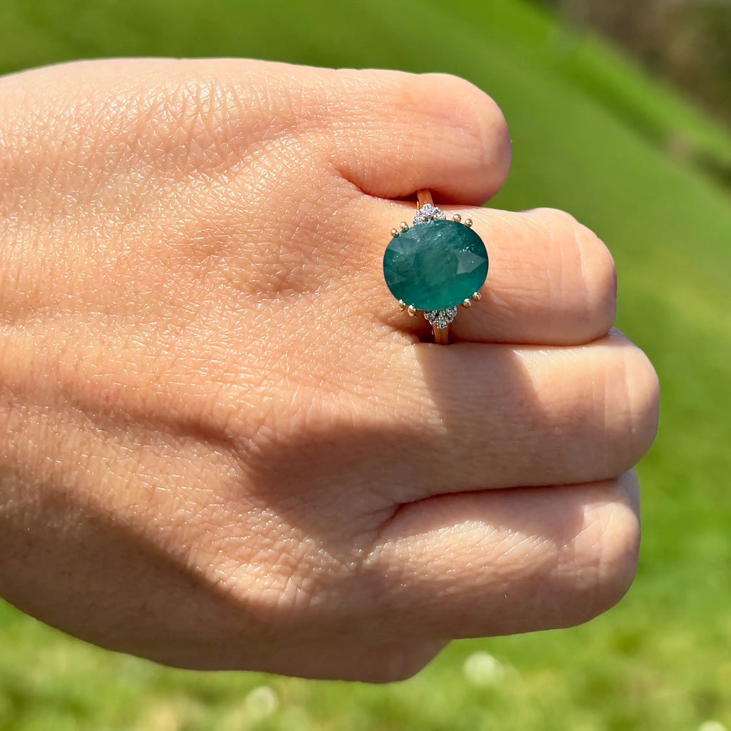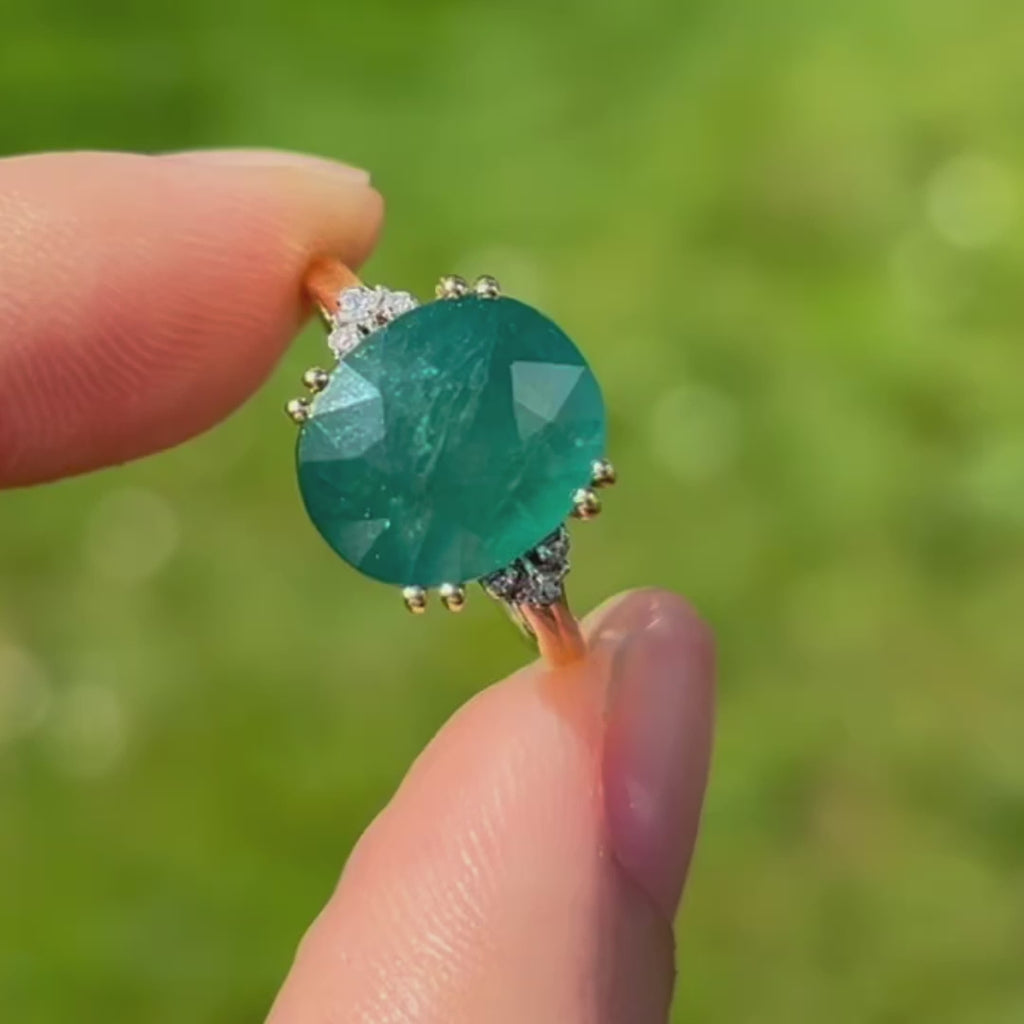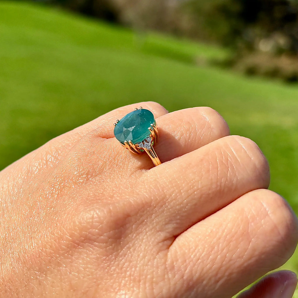 这枚优雅的戒指以一颗引人注目、稀有独特的宝石为主,为独具慧眼的收藏家提供真正与众不同的藏品。镁铝榴石是世界上鲜为人知的宝石之一,因其迷人的蓝绿色调而备受珍视,介于祖母绿和蓝绿色之间,并带有微妙、近乎天鹅绒般的半透明感。