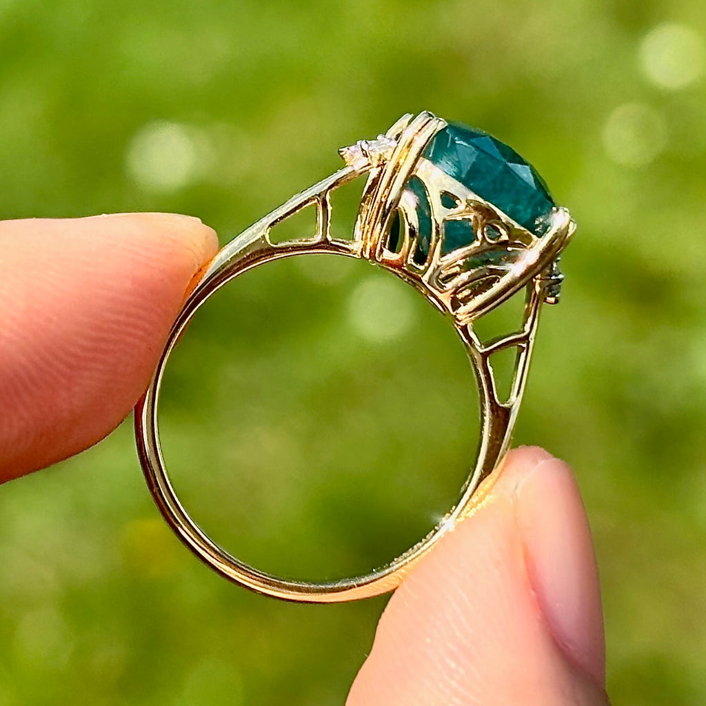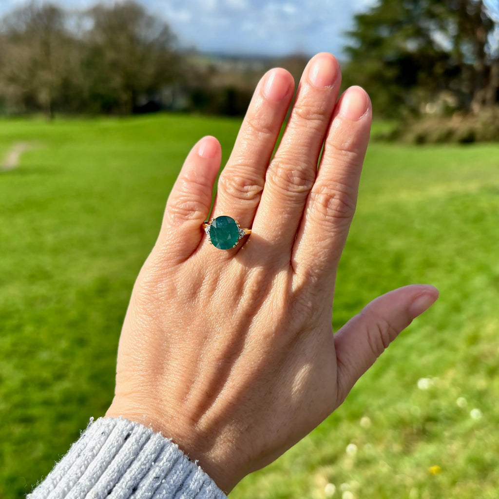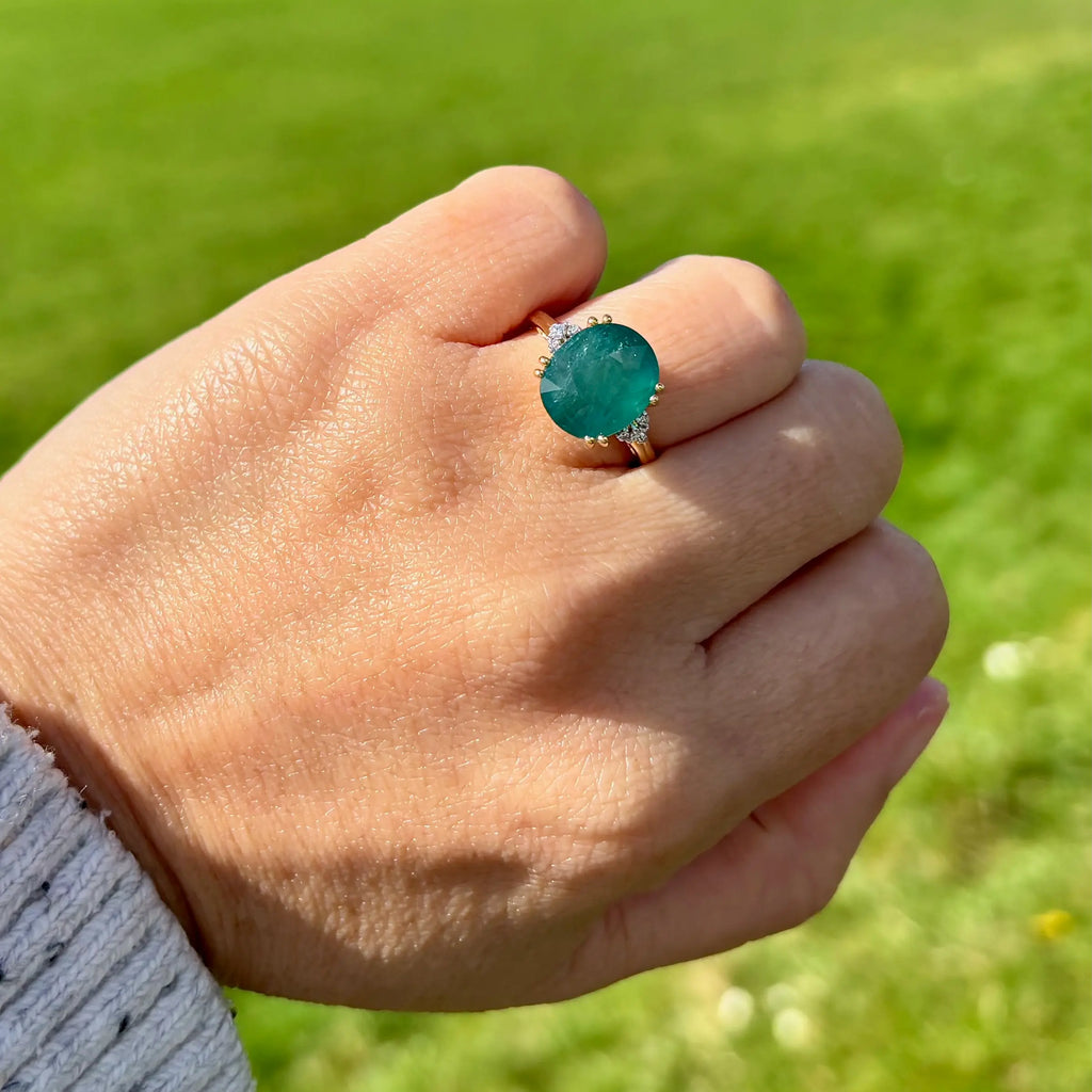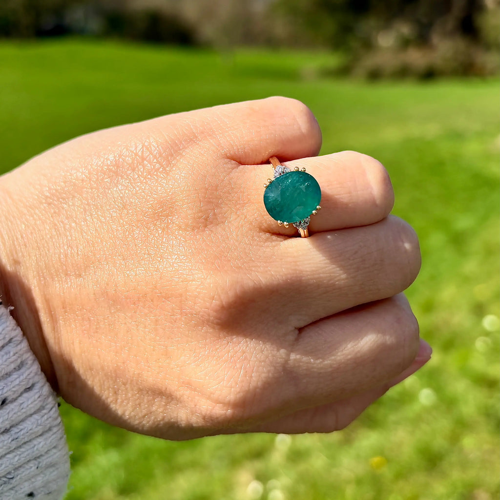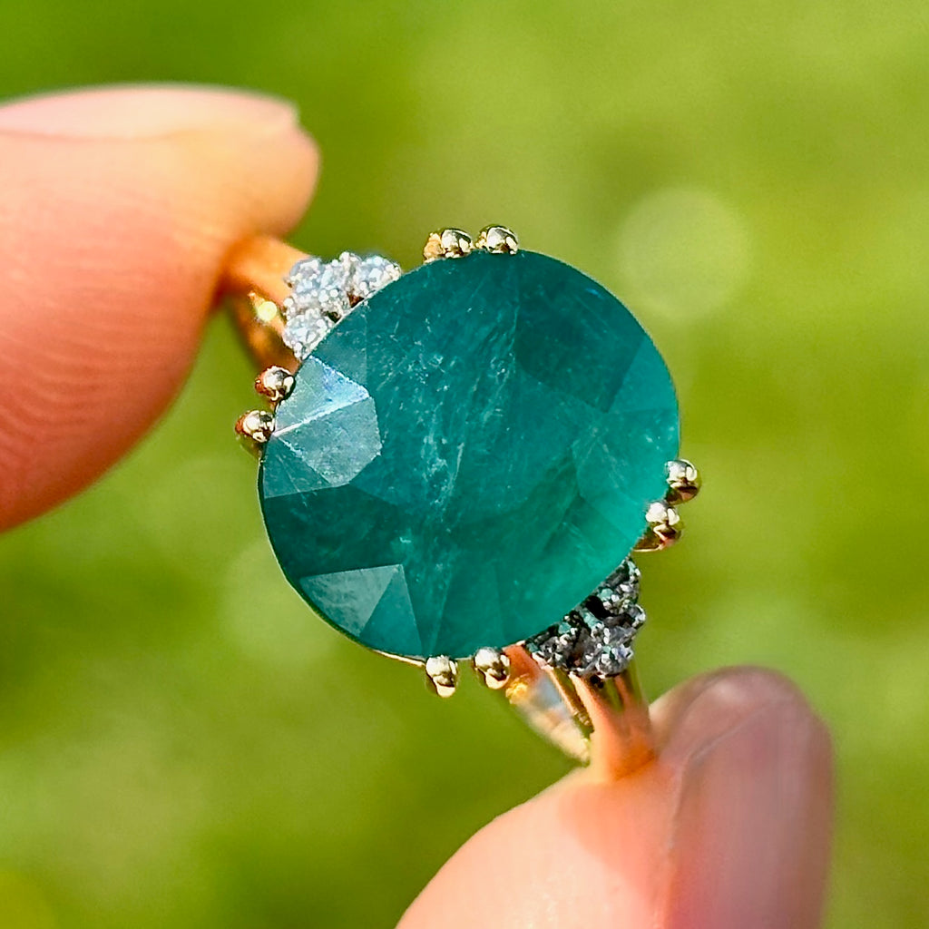 这枚优雅的戒指以一颗引人注目、稀有独特的宝石为主,为独具慧眼的收藏家提供真正与众不同的藏品。镁铝榴石是世界上鲜为人知的宝石之一,因其迷人的蓝绿色调而备受珍视,介于祖母绿和蓝绿色之间,并带有微妙、近乎天鹅绒般的半透明感。
